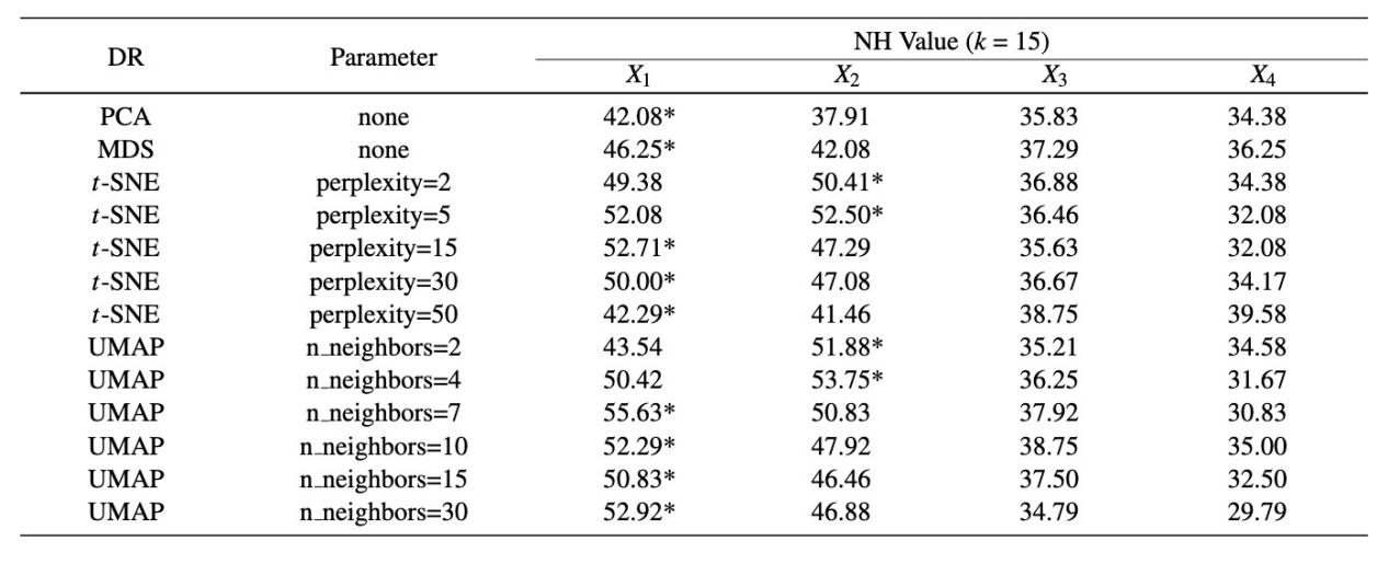 面向五種典型LSTM可視分析任務(wù)場景,文中通過多組對照實驗定性和定量比較了四種DR技術(shù)的表現(xiàn)性能和效果。