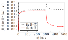 仿真結果表明, 在氣侵發生前, 環空中無氣相存在, 文獻[12]所提單相水力學模型準確刻畫了井底壓力與井底流量的變化趨勢, 其自適應觀測器能夠準確地估計井底流量與壓力. 但是, 當仿真進行至300s 時, 井下突然發生氣侵, 環空流體從單相流轉變為氣液兩相流, 文獻[12]中提出的機理模型及觀測器方法估計精度大大降低, 自適應觀測器估計井底流量的平均相對誤差達到了74.67%,估計井底壓力的平均相對誤差為1.52%。