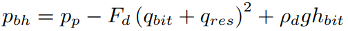 同時, 當井下發生氣侵時, 井底壓力的計算需加入下式: