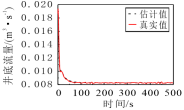 針對已建立的氣液兩相流模型,使用自適應觀測器估計井下未知參數及狀態。首先假設井底已發生氣侵,井下未知參數的估計結果如圖1—圖3所示,井底流量和壓力的估計結果如圖4—圖5所示。
