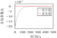 圖1未知參數θ1仿真結果 圖2未知參數θ2仿真結果 圖3未知參數θ3仿真結果