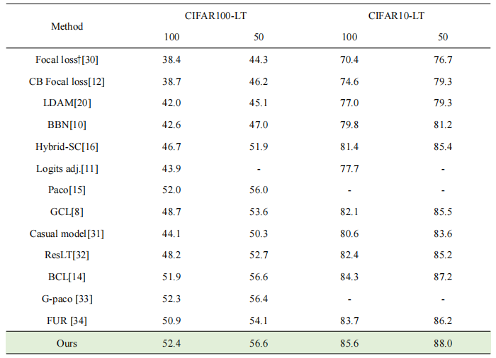 表1 對不同不平衡因素下CIFAR10/100-LTtop-1測試精度(%)進行基準測試