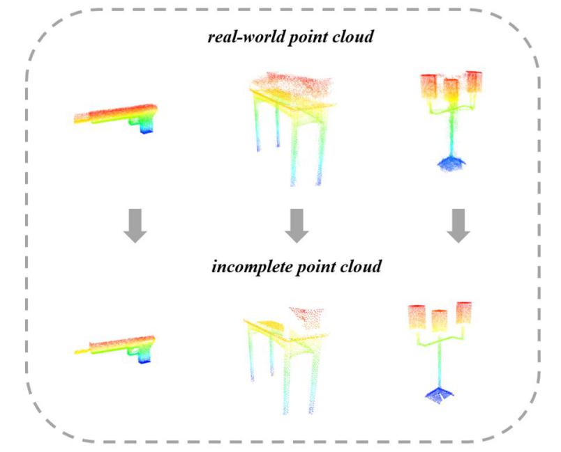 圖1 真實世界對象(上圖)與3D掃描儀捕獲的不完整數據(下圖)之間的比較