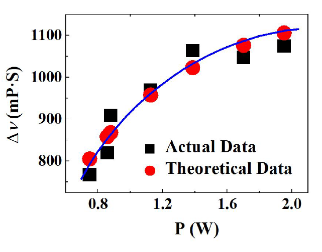 圖4 原油粘度的變化量(?v)隨激光功率的變化。