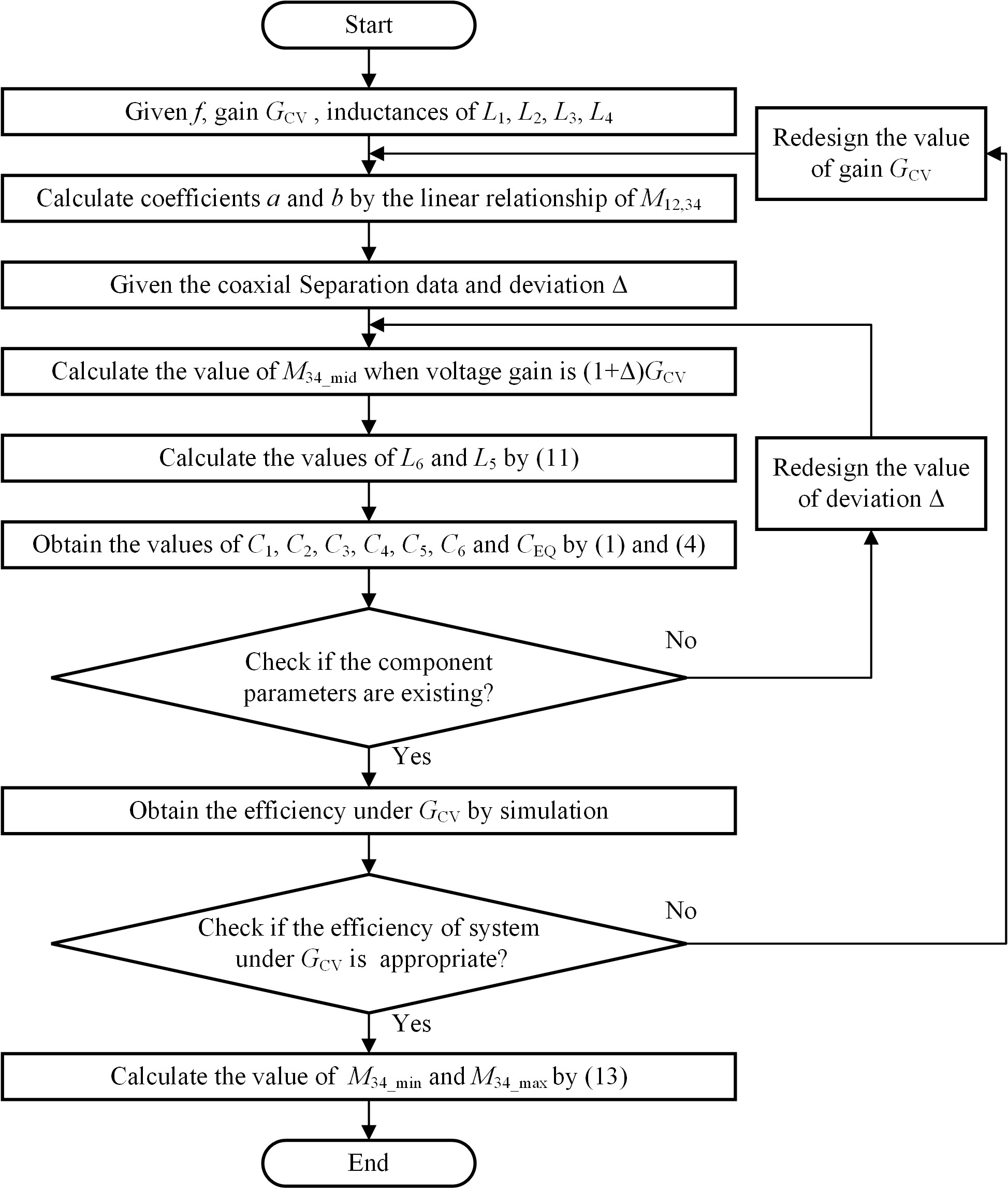 通過對ISOP型復(fù)合拓?fù)涞膮?shù)優(yōu)化設(shè)計,提高了系統(tǒng)的平均效率和抗偏移性能。參數(shù)設(shè)計流程如圖3所示。