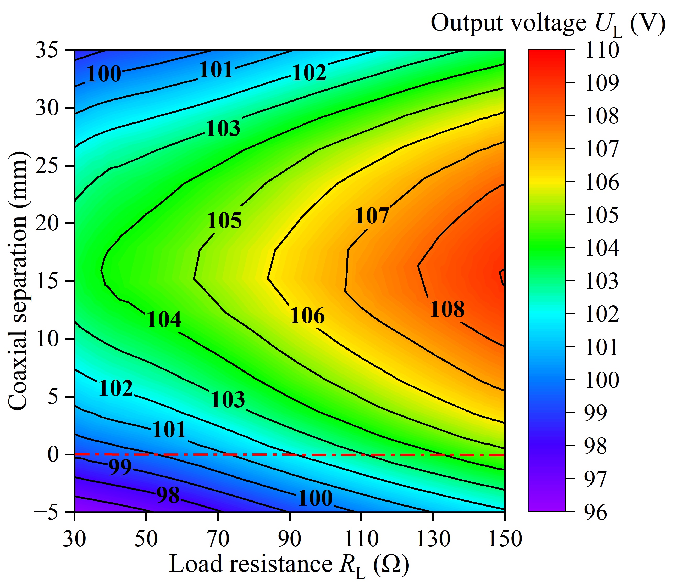 圖5 負(fù)載電壓UL隨線圈分離和負(fù)載變化的曲線