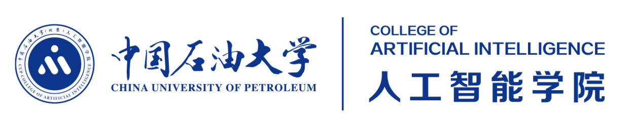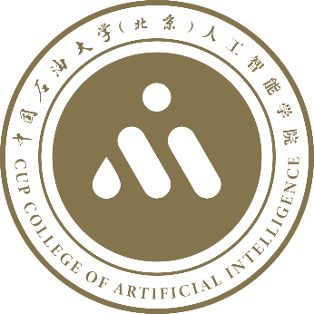 人工智能學院院徽由外環和內部標志組成,外環為中英文校名、院名,內部標志為字母“AI”和石油“油滴”組合成的等邊三角形。