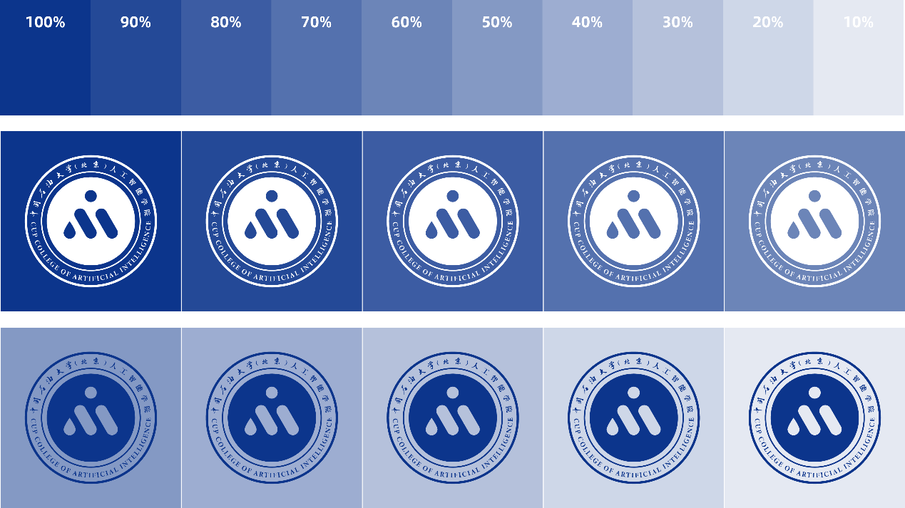 人工智能學院宣傳標準色包含藍、白、黑三色。其中藍色采用PANTONE19-4052(RGB:12-53-140 CMYK:100-90-15-0);白色為純白(RGB:255-255-255);黑色為純黑(RGB:0-0-0)。