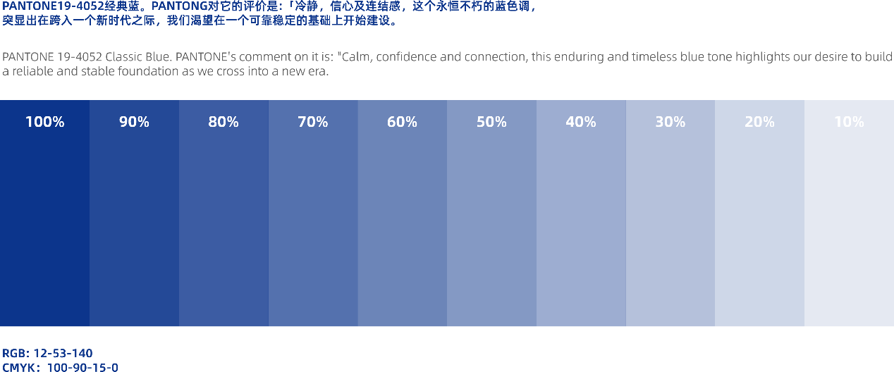 淺藍輔助色一般用于電子海報、ppt等數字藝術設計背景色,少數情況也可用作元素填充色。特殊場合可使用專金、專銀等印燙專色用于工藝品、高檔物料的制作。