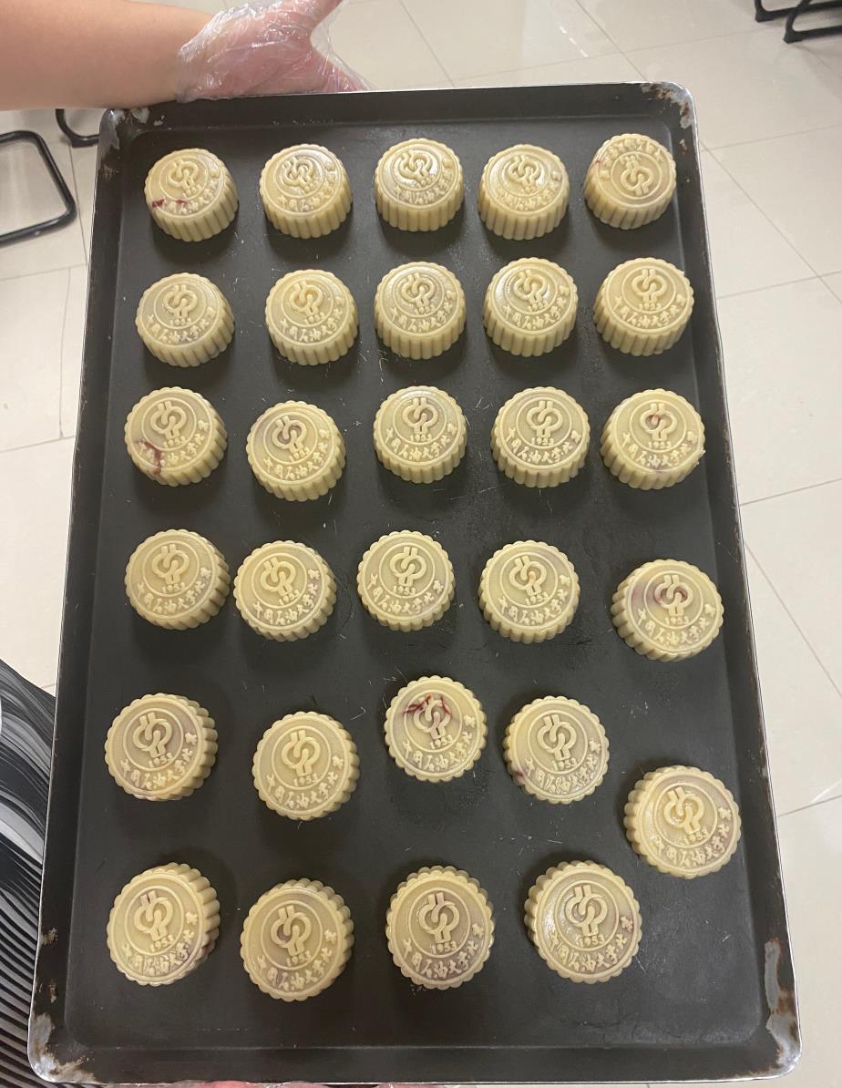學院提前準備了面團、餡料、手套、模具等手工制作月餅的原材料和設備,教師們紛紛動手實操——“壓皮兒、裹餡兒、揉團、模制”。制作過程中,教師們一邊親手做著印有石大logo和地標建筑的月餅,一邊相互交流手法和技巧,其樂融融,提前感受到了充滿溫情的中秋佳節。經過一番通力協作,共同制作完成了山楂、紫薯兩種餡料的傳統月餅。看著自己巧手完成的作品,大家的喜悅之情溢于言表。