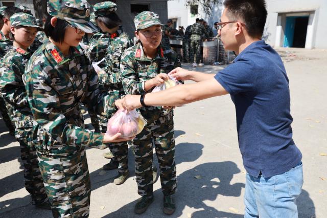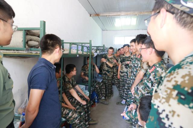 于迎輝副書記親自為同學們發放了慰問品,在詳細詢問并了解學生基本情況后,提出了兩點希望與要求。一是要盡快成長,在學會獨立的同時,保留一份天真,要努力讓這片赤子伴隨自己的一生。二是希望同學們能借助這次的軍營生活,盡快熟悉彼此,在訓練的過程中互相扶持,享受并珍惜此次為數不多的集體生活。于迎輝副書記還囑咐學生們,不同的人生階段總會經歷些許陣痛,這種陣痛過后就是成長。而后,于迎輝副書記安撫了學生們的思鄉情緒,并衷心祝愿同學們順利完成本次軍訓。