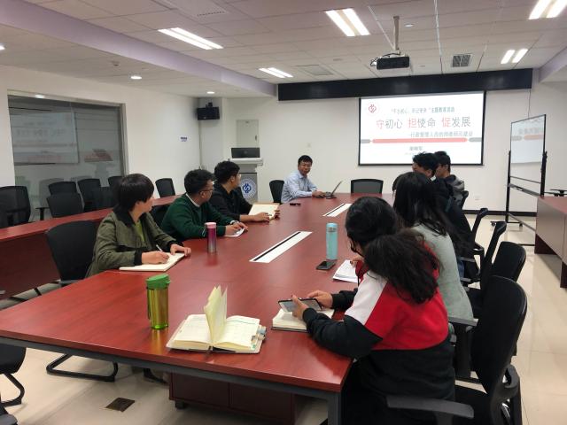 10月23日,黨委副書記于迎輝以“堅持弘揚紅船精神,扎實本領做好科研”為題為博士黨支部講黨課,他圍繞習近平總書記關于“紅船精神”豐富內涵和時代價值的論述,號召博士生黨員以服務國家能源戰略發展為己任,堅定共產主義信仰、創新實干,為實現中華民族偉大復興的中國夢而努力學習。