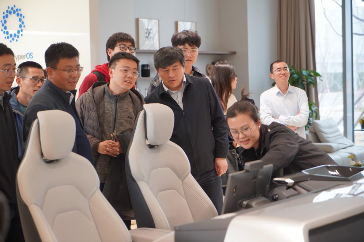 師生黨員還深入小米汽車生產車間,實地參觀了壓鑄、沖壓、車身等生成流程,小米自研的超級大壓鑄流水線系統、運輸物料的AMR機器人、智能質檢系統、自動裝配的機械臂等智能化設備的廣泛運用,給大家留下深刻印象。最后部分師生參與了小米SU7試乘,親身體驗了小米SU7的卓越性能和舒適駕乘體驗。