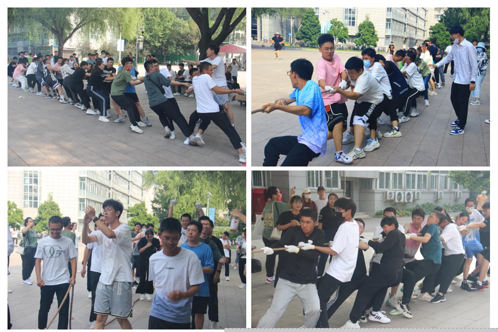 同時,七個新生班級在北校區南廣場開展了“信路啟航”新生拔河比賽。當比賽的哨聲響起,同學們緊握長繩,奮力求勝,場下的同學吶喊加油,熱情高漲。哨子聲、吶喊聲此起彼伏,現場氣氛熱烈歡快。經過三輪14局的比賽,自動化22-1班摘得桂冠。各班同學齊心協力,頑強拼搏,展現了新生們良好的精神風貌與強大的意志品質。
