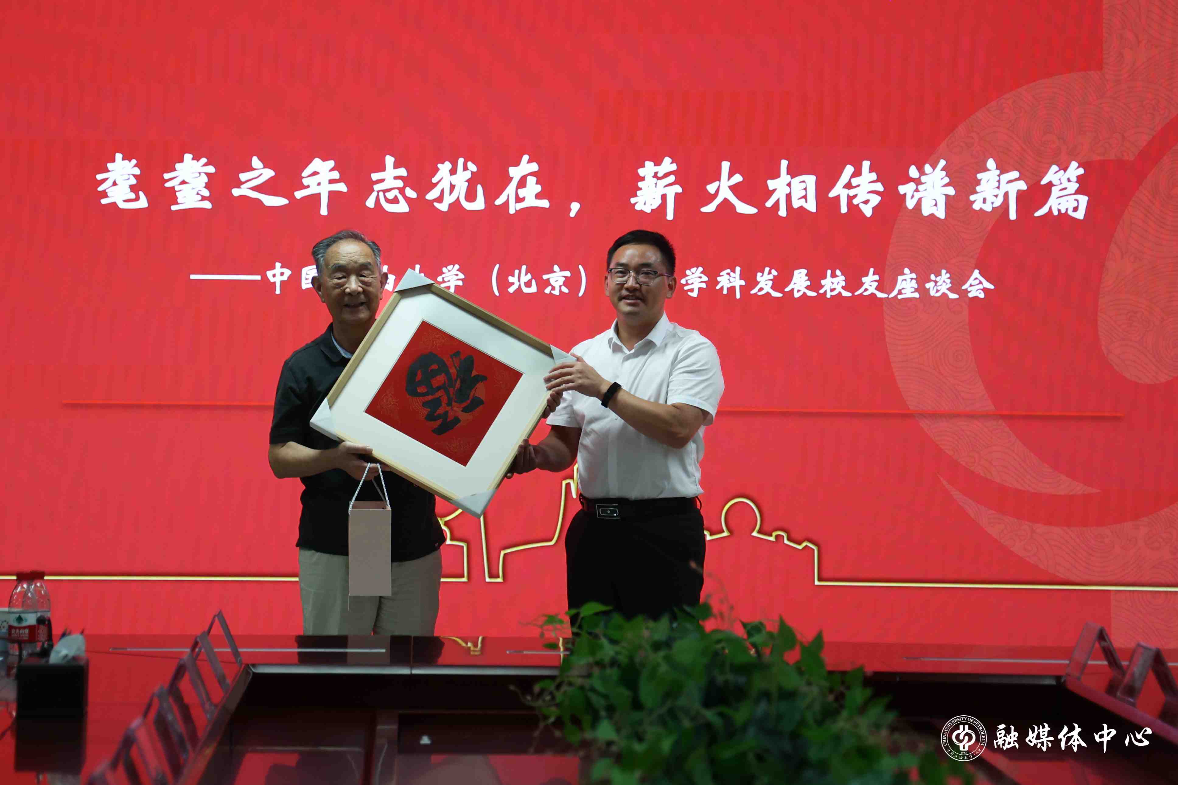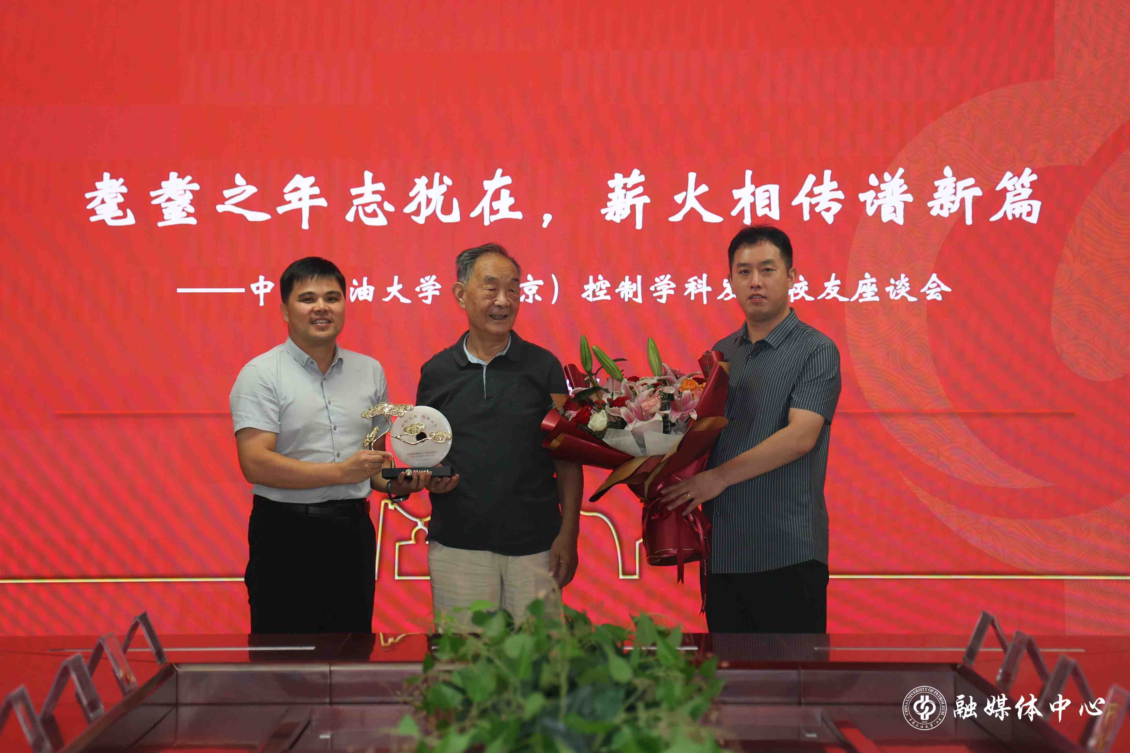座談會當天適逢袁璞教授90壽辰,蒲俊霖和中國石油大學(華東)控制學院副院長陳鴻龍代表兩個學校為袁璞教授贈送了禮物,向他為中石大控制學科發展作出的卓越貢獻表示崇高敬意。在講話中,蒲俊霖高度肯定了校友們在捐資助學、校企合作等方面為母校作出的貢獻。他表示,中石大控制學科有著光榮的歷史,以袁璞教授為代表的老一輩中石大人用奮斗和智慧為學校和學科的發展奠定了堅實的基礎。當前,大數據、人工智能等新一代信息技術不斷突破,能源行業智能化發展、數字化轉型為學校提供了新的機遇,希望廣大校友繼續關心、支持學校的改革發展,凝心聚力,攜手開創學校高質量發展新格局。