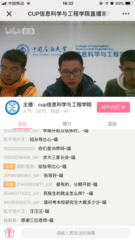 此次通過(guò)網(wǎng)絡(luò)直播形式開(kāi)大學(xué)生家長(zhǎng)會(huì)在校內(nèi)尚屬首次。直播持續(xù)近1小時(shí),主要包括宣講和提問(wèn)互動(dòng)兩個(gè)環(huán)節(jié),信息科學(xué)與工程學(xué)院黨委副書(shū)記于迎輝介紹了學(xué)院成立后的基本情況,并就家長(zhǎng)們普遍關(guān)注的轉(zhuǎn)專業(yè)、考研、就業(yè)及相關(guān)規(guī)章制度等方面作了重點(diǎn)解讀。直播過(guò)程中,學(xué)院各年級(jí)輔導(dǎo)員對(duì)學(xué)生家長(zhǎng)提出的一些問(wèn)題進(jìn)行了解答。