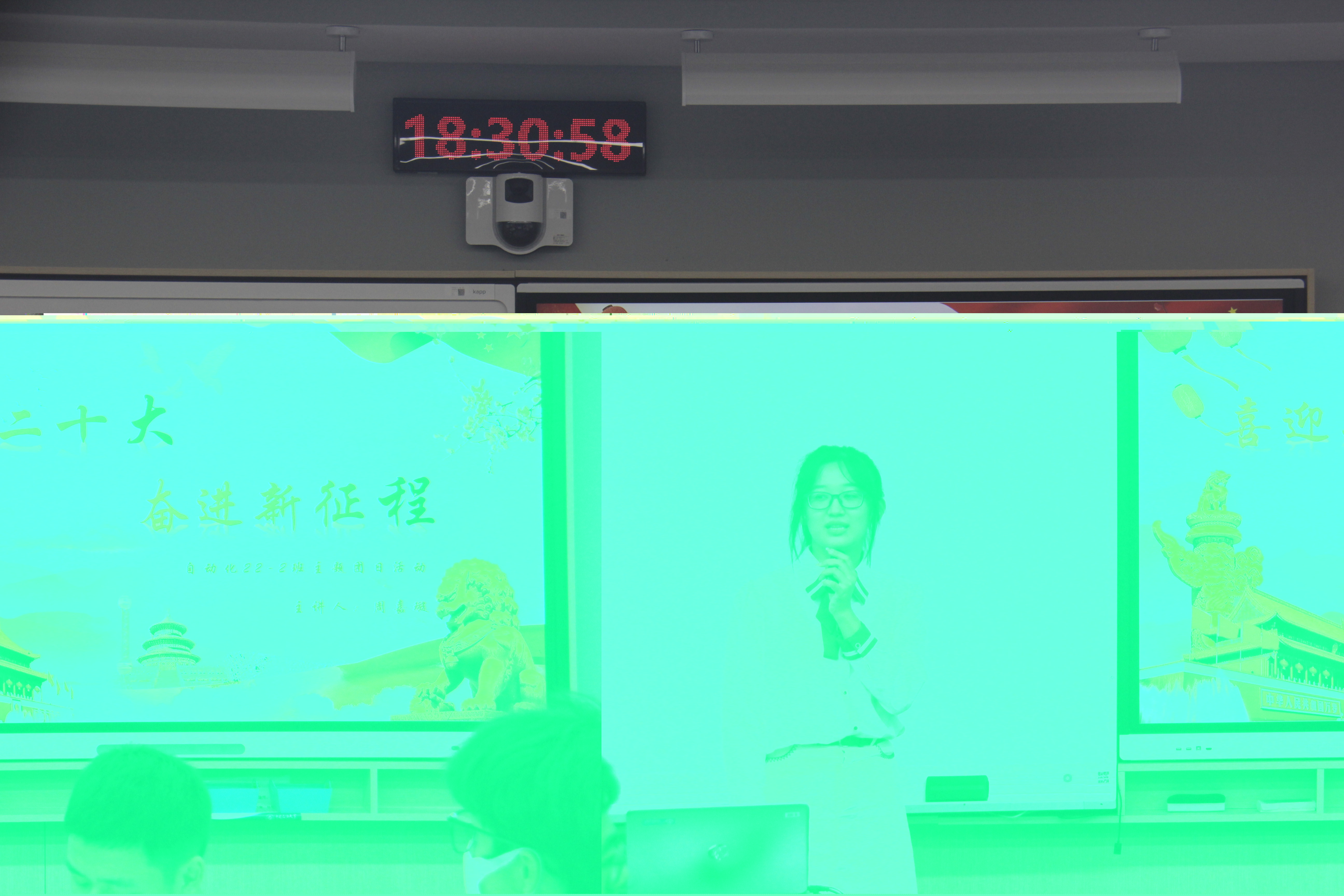 首先,學院電子19-1團支部書記周嘉璇與自動化22-2團支部全體團員共同帶來了“喜迎二十大 奮進新征程”主題團日示范課。她運用重溫誓詞、理論講解、知識競答、游戲互動等常用活動形式,生動的演示了如何舉辦一個有團味的團日活動。