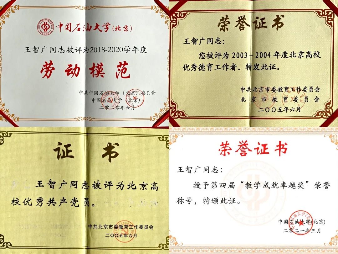 王智廣教授先后主持省部級教學改革項目2項、校級教改項目5項,累計出版計算機類教材10部,發表教學研究論文8篇。2017年榮獲中國石油教育學會教學成果一等獎,2019年被評為北京市教學名師,2021年獲得中國石油大學(北京)教學成就卓越獎,2021年組織8名青年教師獲得中國石油大學(北京)教學成果二等獎。
