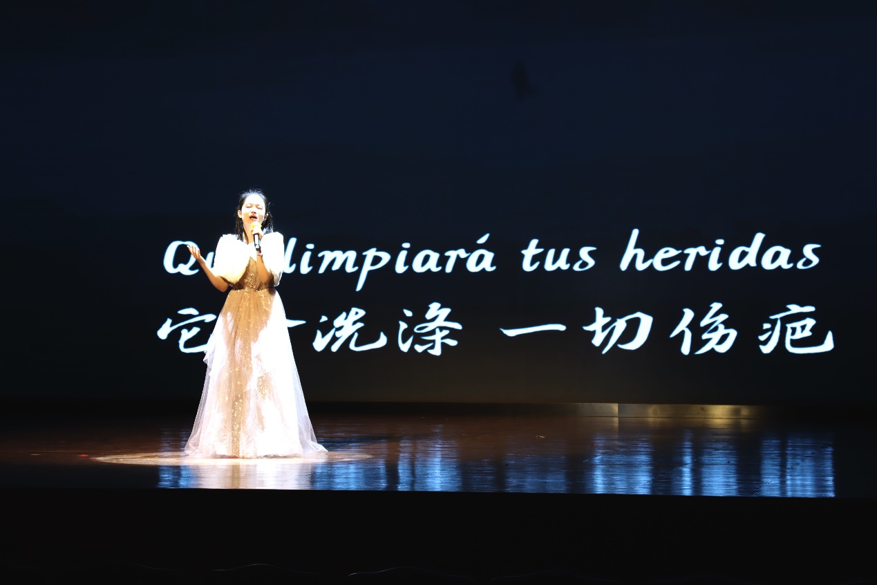 11月17日,北京外國語大學主辦第三屆全國西班牙語歌曲大賽決賽,外國語學院2023級外國語言文學碩士張辰芊演唱曲目《Gloria》獲優秀獎。