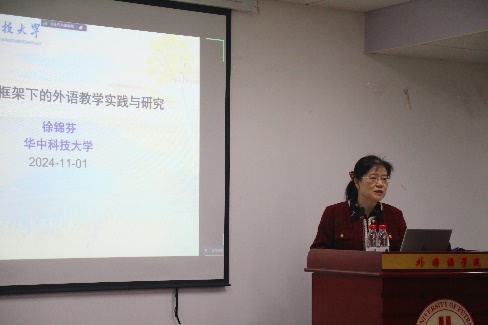 11月1日,華中科技大學徐錦芬教授受邀以“超學科框架下外語教學實踐與研究”為題作了外語教學與研究工作系列坊講座第四講,外國語學院公共英語教學部主任梅麗主持講座,學院師生代表參加講座。