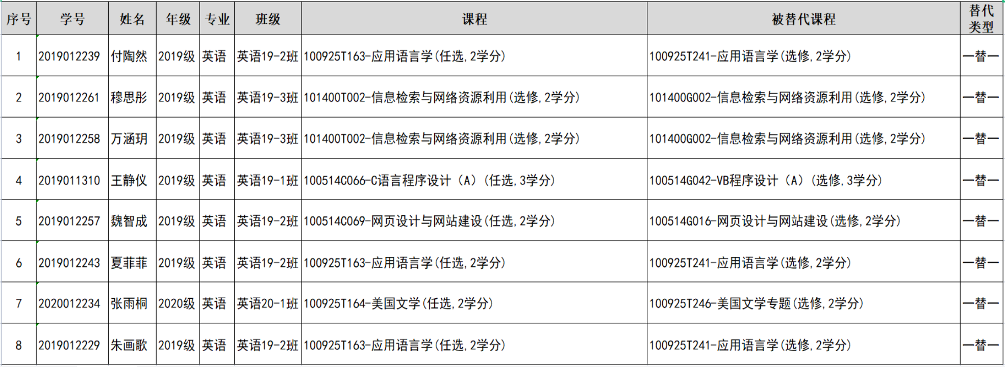 根據教務處通知要求,現對本科生申請辦理課程替代情況公示如下: