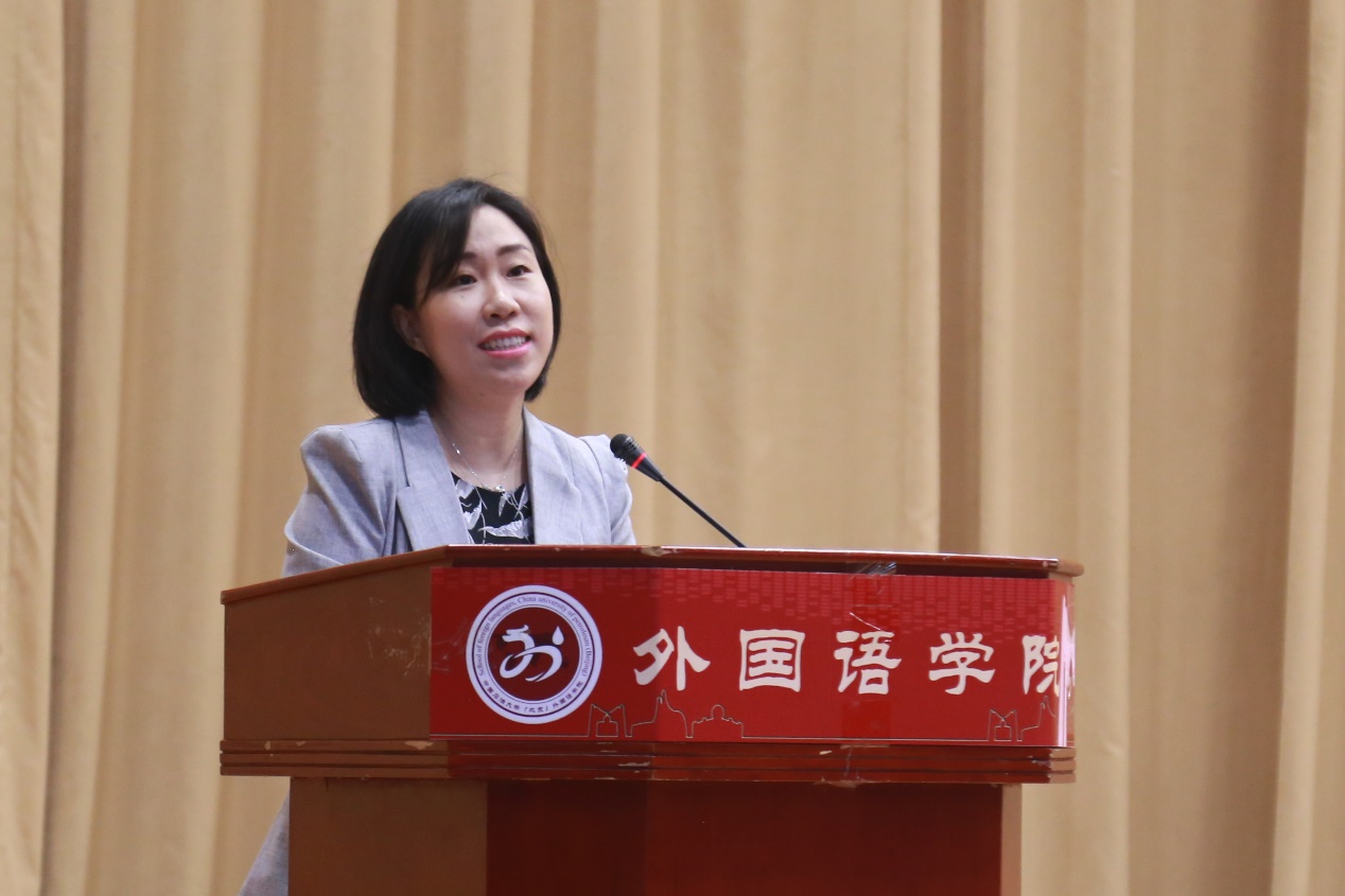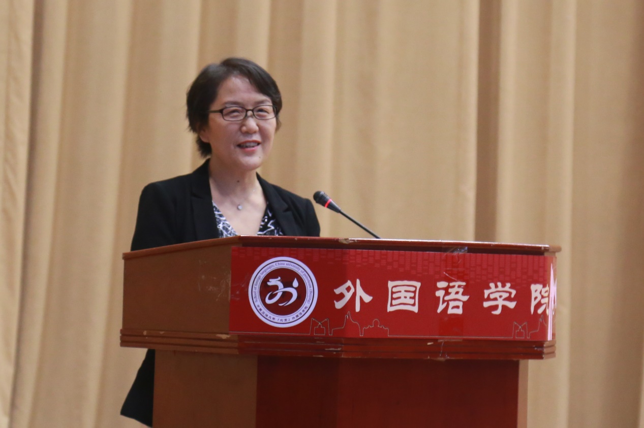外國語學院院長趙秀鳳教授致辭。趙院長首先對2020級新生表示熱烈歡迎。趙院長表示,疫情之下,這屆新生遭遇了前所未有的嚴峻考驗,但眾多抗議過程中涌現(xiàn)的英雄始終鞭策著、激勵著同學們勇往直前。與此同時,趙院長對這屆已經(jīng)經(jīng)歷過風雨的大一新生充滿信心并給予充分的肯定。深處百年未有之大變局時代,國家面臨前所未有的挑戰(zhàn),因此趙院長對新一代青年人寄予厚望,鼓勵同學們突破“小我”,構(gòu)筑“大我”,為祖國助力。此外,趙院長對作為中外語言建設(shè)的青年人提出要求:既要有世界視野,又要有家國情懷;用語言作為武器去打拼在國際戰(zhàn)場;用語言在國家和世界之間搭建橋梁;用語言講述中國故事,傳播中國文化;用語言傳播智慧,成就夢想。最后,趙院長鼓勵同學們大學里的每一天,都要用堅定的信念,用實際的行動,汲取力量,成就夢想,報效國家。
