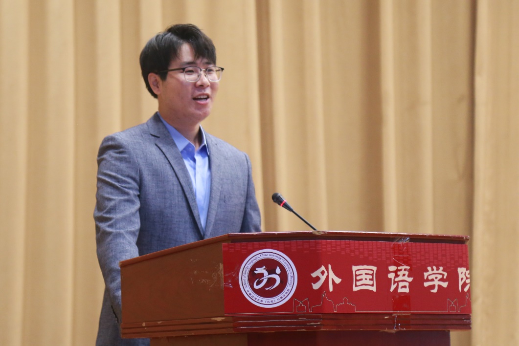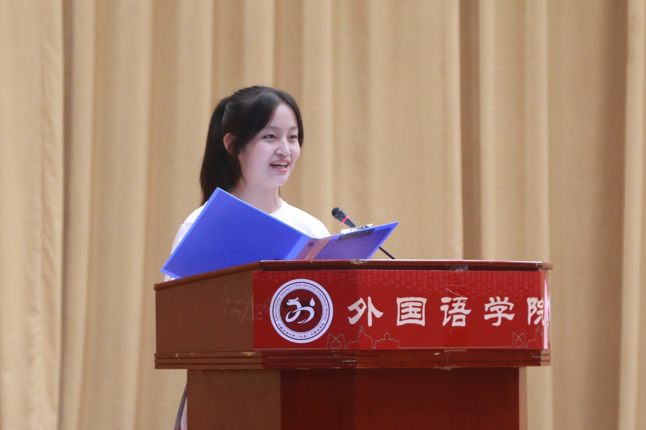 外國語學院唐萌萌老師作為教師代表發(fā)言。唐老師向同學們介紹了外國語學院充滿活力,擁有一流的教師隊伍,是學生成才的快車道。在這里,學生可以掌握各種實際技能,成為擁有國際視野的復合型人才。此外,唐老師希望同學們可以盡快適應(yīng)大學生活,培養(yǎng)語言能力,全面發(fā)展,善于解決困難、抵制誘惑,做好學習規(guī)劃并合理利用時間。最后,唐老師表示全院老師都將作為學生們堅強的后盾,永遠與同學們攜手并進。