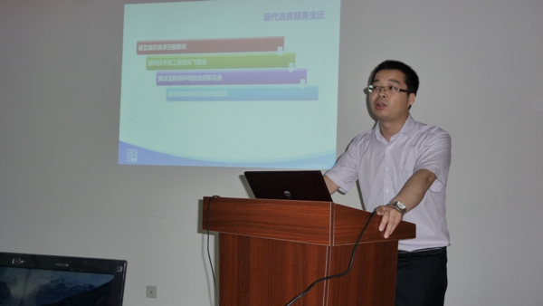 王華樹是北京大學MTI教育中心的主任助理,在國內外知名語服務企業供職多年,經驗豐富。 講座上,他從網站的動態、靜態分類入手,以外國語學院主頁網站為實例,講解了網站翻譯的發展、流程及Trados2009的操作方法。隨后,他又介紹了本地化的基礎知識和軟件工具,并具體演示了Tageditor和 Alchemy Catalyst的使用方法。講座最后,王華樹回答了在場師生的問題,氣氛十分熱烈。