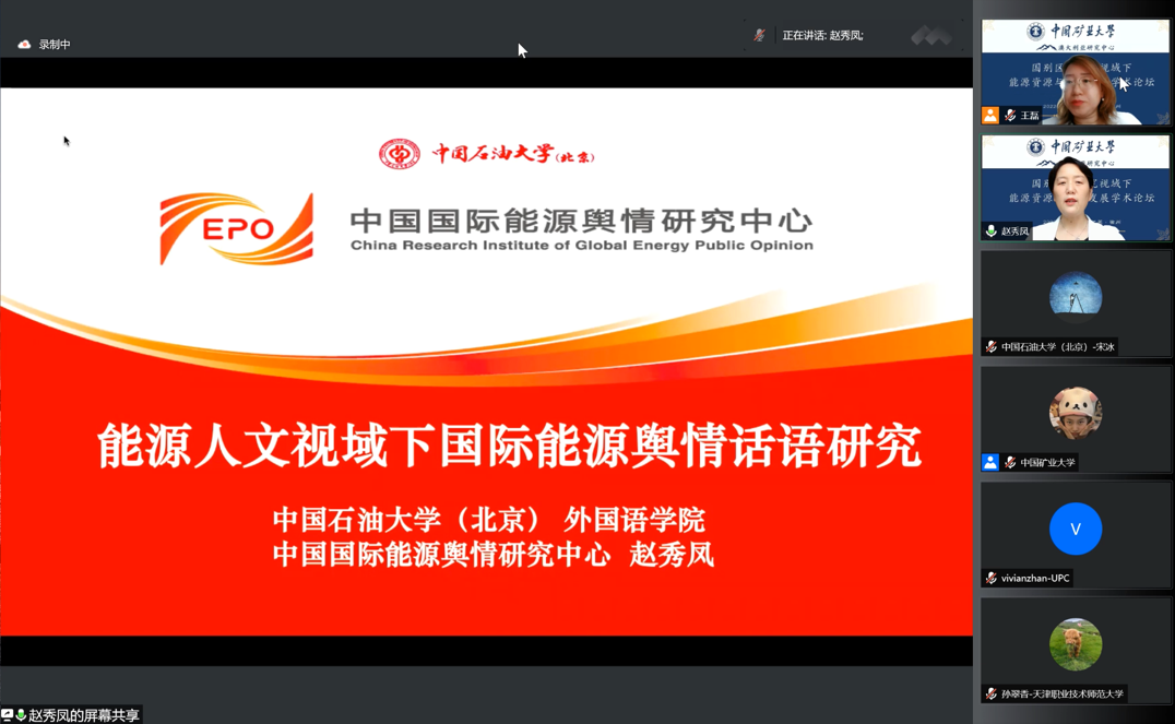 2022年6月25日,中國石油大學(xué)(北京)外國語學(xué)院趙秀鳳院長線上參加了國別區(qū)域研究視域下能源資源與社會發(fā)展學(xué)術(shù)論壇。
