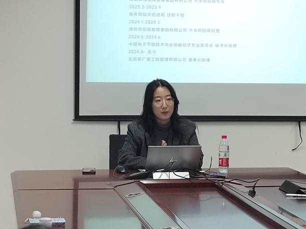 李家秀現(xiàn)任北京榮廣盛工程管理有限公司董事長(zhǎng)助理,曾在濰坊市招商集團(tuán)、中國(guó)電子節(jié)能技術(shù)協(xié)會(huì)任職。她從自身經(jīng)歷出發(fā),指出實(shí)習(xí)是大學(xué)生積累工作經(jīng)驗(yàn)和明晰個(gè)人職業(yè)發(fā)展方向的重要途徑,她鼓勵(lì)學(xué)生充分利用實(shí)習(xí)群、校園海報(bào)等學(xué)校提供的資源,及時(shí)獲取最新招聘信息,同時(shí)抓住校招機(jī)會(huì),積極投遞簡(jiǎn)歷、增加面試機(jī)會(huì)、積累實(shí)踐經(jīng)驗(yàn),以提高應(yīng)變能力和溝通技巧,同時(shí)清晰認(rèn)識(shí)自我,明確未來(lái)職業(yè)方向。李家秀在互動(dòng)環(huán)節(jié)中,針對(duì)學(xué)生提出的問(wèn)題分享了自己在求職過(guò)程中遇到的問(wèn)題,并提出了解決辦法。