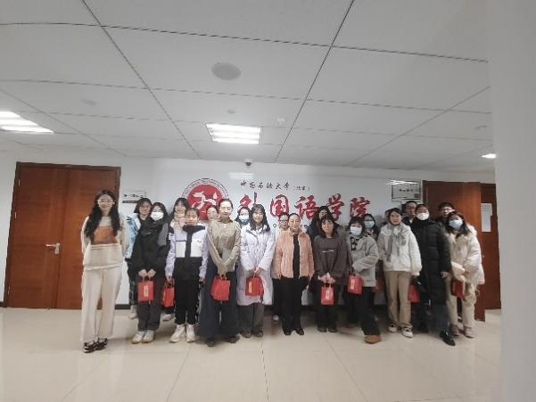 12月8日,外國語學院2024屆畢業生考研慰問活動在主樓A724開展,學院黨委副書記劉春陽、本科生畢業班輔導員王芃月、2024級考研學生代表參加活動。