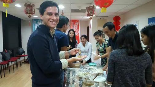 此番情景,不僅是一場美食制作的體驗,更是一次跨越國界的文化交流,一次心靈的觸碰與共鳴。在董靜萍的引領下,孔子學院的師生們共同編織了一個愛與協同的溫馨文化故事,讓這份來自東方的節日溫情,在異國他鄉綻放出別樣的光彩。