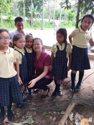 在厄期間,董靜萍經常到當地的大、中小學進行中國文化活動或展示,讓更多的當地學生和民眾接觸和了解中國文化。印象比較深刻的一次活動是應在厄中企和當地一所學校的邀請去比較偏遠地區Zamora省的實地考察,坐了一個多小時飛機后又顛簸數小時到了一所有意愿開中文課的學校Unidad Educativa del Milenio Arutam,她在跟學校孩子們的交流過程中體會到了他們對漢語和中國文化的渴望。那些孩子們,眼眸清澈如水晶葡萄,滿含渴望地凝視著她,嘴角掛著甜美的微笑,尤為動人。董靜萍輕牽小手,與之零距離心靈對話。孩子們對學習中文及中國文化的熱忱,深深觸動了她的心弦。真情流露之間,即使言語不通,心與心的觸碰依舊溫暖無間。“因此,我深感自己必須傾盡全力教導他們,我與這些孩子是親密無間的伙伴。”“只要懷揣愛心,真情自然流露,即便生活方式與文化背景迥異,人與人之間的溫情依然可感可知。”她渴望與當地孩童并肩同行,共探知識的浩瀚海洋,以中華文明之深厚底蘊,點亮他們心中的憧憬之光。這不僅是知識的交融,更是心靈的觸碰與融合,使彼此在文化的碰撞中綻放出璀璨奪目的火花。