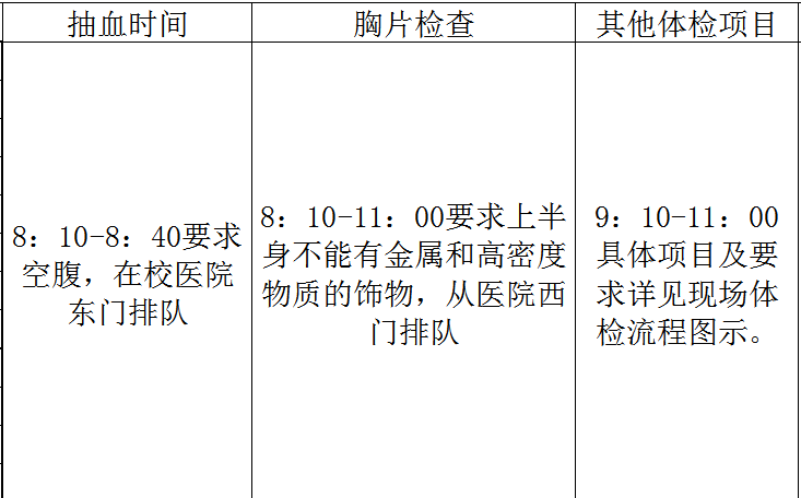 ②2019年5月10日上午,校醫院體檢,體檢安排如下。