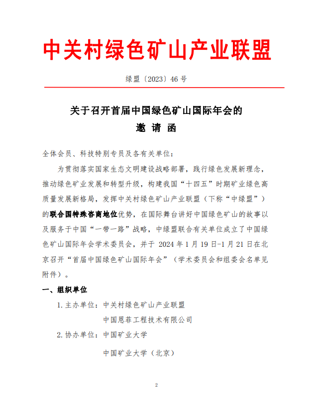 關于召開首屆中國綠色礦山國際年會的邀請函