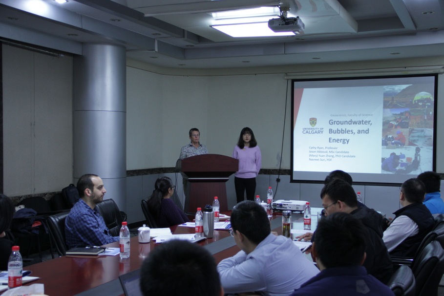 11月15日上午8:30,加拿大卡爾加里大學Cathy Ryan教授一行4人到我院訪問并進行學術報告交流。我院姜振學院長向客人介紹了研究院的基本情況,Cathy Ryan教授做題為《Groundwater, Bubbles, and Energy implication》以及《Stray methane gas migration around Leaky petroleum wells》的報告,李卓、陳海潮、李奔等三位老師分別做了頁巖氣吸附能力影響因素及預測、先存斷層和裂縫控制的誘發地震活動和裂縫導流能力的學術報告。報告后,雙方進行了科研合作以及研究生培養的討論。