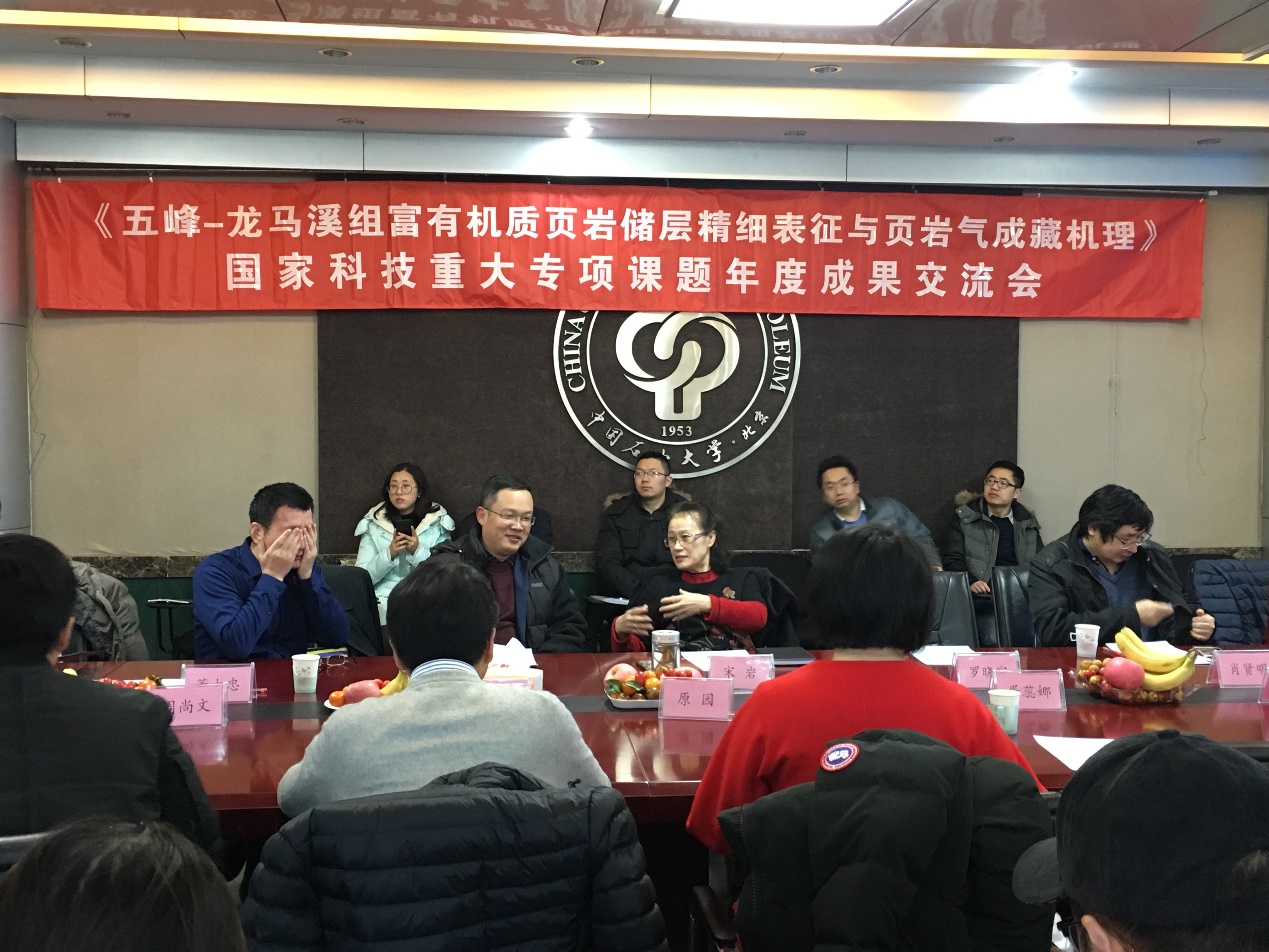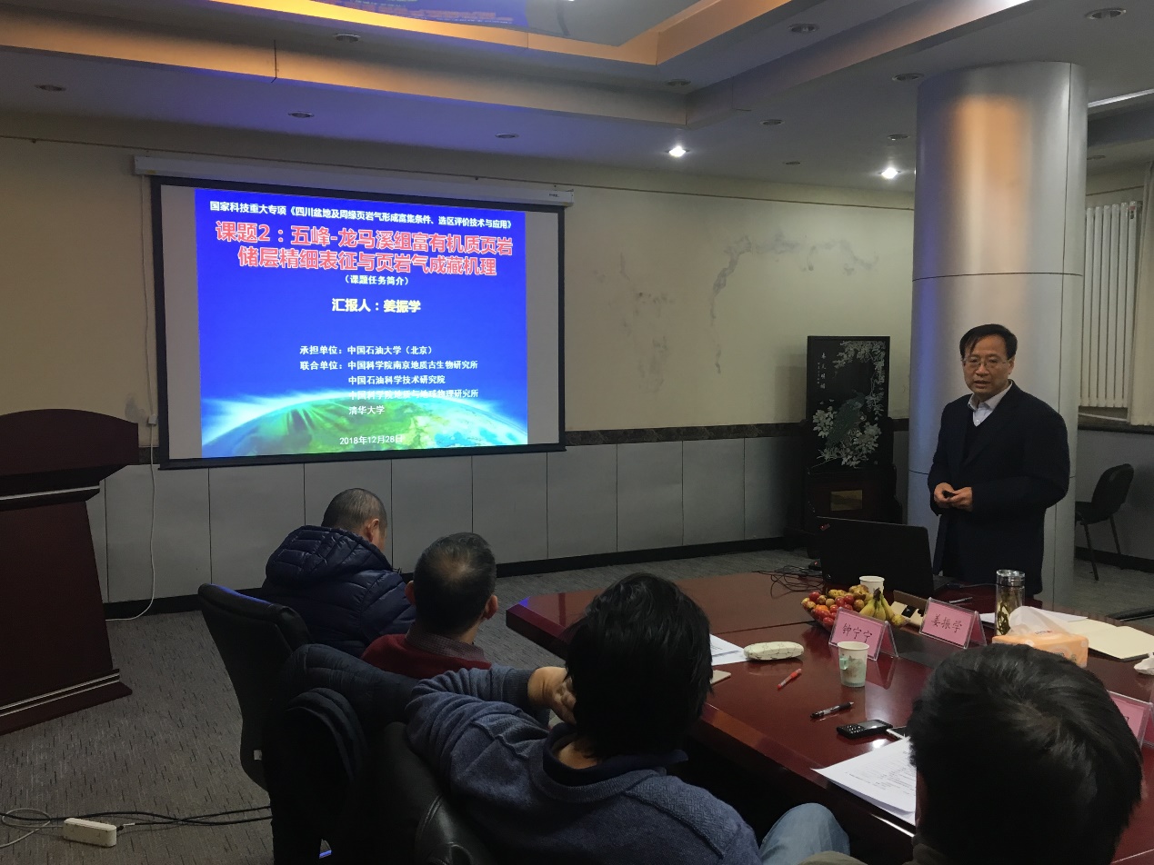 2018年12月28日,由我院姜振學教授任課題長的國家科技重大專項下屬課題“五峰-龍馬溪組富有機質頁巖儲層精細表征與頁巖成藏機理”(2017ZX05035-002)2018年度成果交流會在非常規油氣科學技術研究院召開。課題邀請了中國科學院地質與地球物理研究所羅曉容研究員、中國地質大學(北京)肖賢明教授、中國石油大學(北京)宋巖教授、中國石油大學(北京)鐘寧寧教授、中國石油勘探開發研究院廊坊分院非常規所所長王紅巖教授級高工、中國石油勘探開發研究院廊坊分院非常規副所長董大忠教授組成專家組,宋巖教授任專家組組長。各任務負責人、研究骨干和參與項目的研究生60余人出席會議。