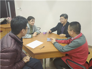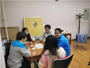 2020年11月13日下午,我院工會在教工活動中心棋牌室舉行了非常規院教職工棋牌對抗交流賽。來自院內各所20余名老師參加了本次活動。參加本次活動的老師可以選擇夠級、雙升、斗地主、圍棋等比賽自由對局,活動中老師們聚精會神、精準計算、謹慎出牌、默契配合。比賽現場笑聲陣陣,氛圍和諧歡暢。