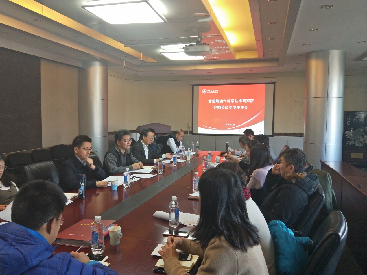 非常規(guī)油氣科學(xué)技術(shù)研究院于2018年12月18日下午3點(diǎn)在非常規(guī)樓301會(huì)議室舉行了導(dǎo)師經(jīng)驗(yàn)交流會(huì),會(huì)議由主管研究生教育姜振學(xué)副院長(zhǎng)主持,參會(huì)人員有徐樟有書記、鮮成鋼院長(zhǎng)和郭繼香教授等14名研究生指導(dǎo)教師和院研究生教學(xué)管理秘書。座談會(huì)學(xué)習(xí)了《關(guān)于全面落實(shí)研究生導(dǎo)師立德樹(shù)人職責(zé)的實(shí)施細(xì)則》文件、老教師介紹研究生培養(yǎng)經(jīng)驗(yàn),新老導(dǎo)師就研究生培養(yǎng)工作進(jìn)行了充分的交流。