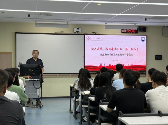 2025年6月12日,畢業(yè)生離校前夕,學(xué)院黨委書記王兵老師以“清風(fēng)啟航:扣好廉潔從業(yè)‘第一粒扣子’”為主題,為全體畢業(yè)生黨員講授了在校期間最后一堂黨課。