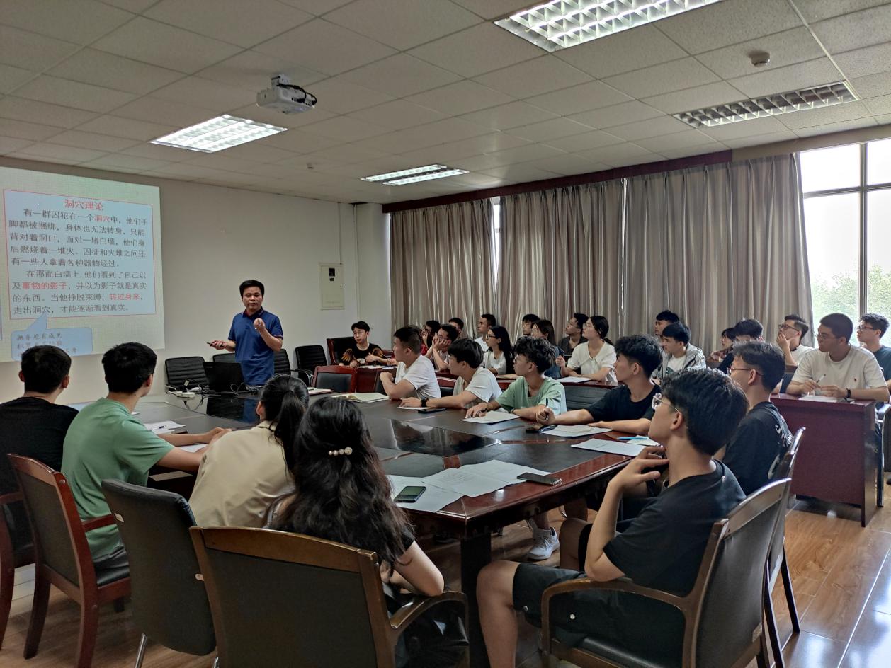 周玉成以“知識論+方法論”為題,講述了《實踐論》和《矛盾論》提出的背景、主要內容以及現實意義,號召同學們多去圖書館,品經典、讀原著、悟原理、感真理,把所學、所思、所感運用到實踐中去,勤于實踐、勇于探索,學好專業知識,錘煉個人本領。在實現第二個百年奮斗目標的“趕考”路上,他要求各位預備黨員,要時刻不忘初心、牢記使命,勇于擔當作為,立志成長成才,努力成為擔當民族復興大任的時代新人。