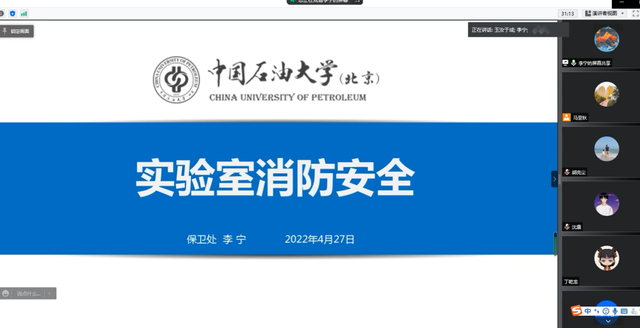 李寧講述了引起火災的主要原因,運用學校實驗室火情火險的典型案例提高大家的重視;介紹了常見的消防設施器材,教育引導師生正確使用消防設施器材;重點講解了火災預防和發生火災的處理方法,文字與視頻相結合,校外案例與校內事故相聯系,生動形象地講述了關于實驗室消防安全的注意事項,普及了消防安全常識,講解深入淺出。