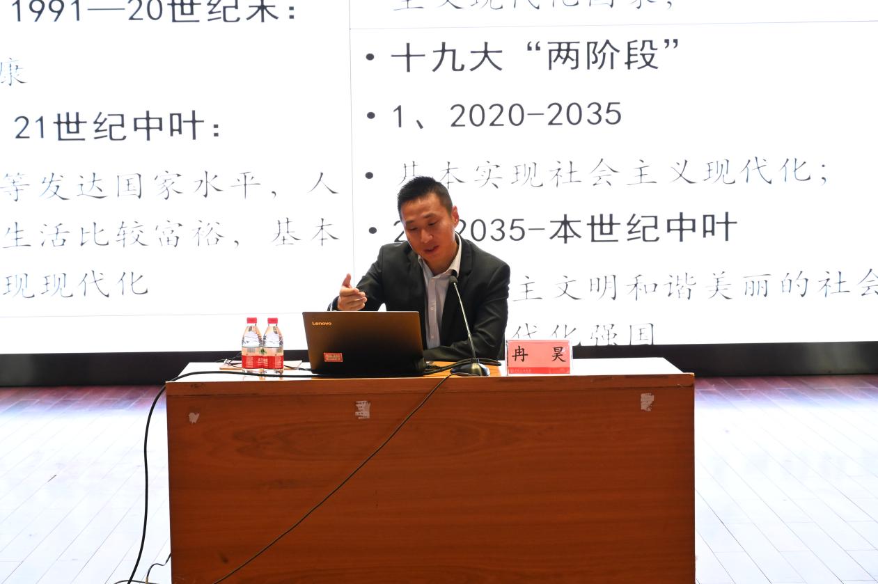 冉昊以“全面建設社會主義現代化國家的行動綱領——學習黨的二十大精神”為題開展專題講座,從大會的主題引入,強調了“全面貫徹、全面建設、全面推進”的重要含義,闡述了中國式現代化的基本邏輯和結構。從歷史定位出發,介紹了馬克思主義中國化的三次飛躍;講述了國家完成脫貧攻堅、全面建設小康社會的歷史任務;分析了中國化時代化的馬克思主義行的原因。從使命任務切入,指出了中國共產黨的中心任務和戰略安排,分析了中國式現代化的五大特征、本質要求和原則。從戰略部署聚焦,指出了對一些問題的誤區,指明了正確的理解方式;強調了國家安全、社會穩定等重要內容,重點強調了教育、科技和人才的基礎性和戰略性支撐的作用。以實現保障結尾,點明了推進中國式現代化關鍵在黨的重要論述;贊揚了中國共產黨堅持自我革命、推進全面從嚴治黨的偉大實踐;再次強調了新時代新征程全黨必須牢記五個“必由之路”。
