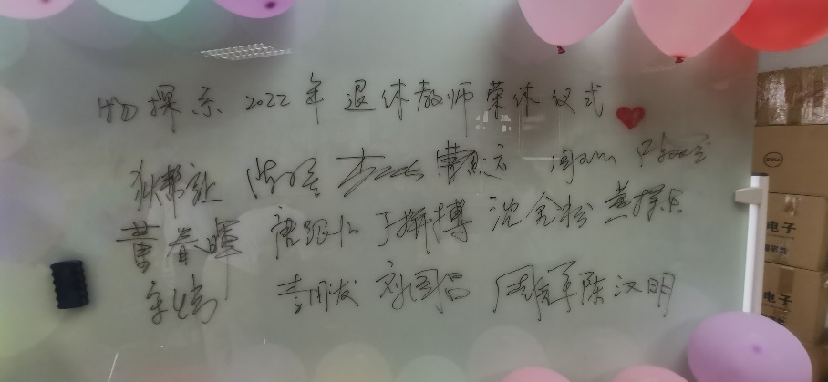 2022年9月8日,教師節和中秋節前夕,物探系在地質樓502為退休教師狄幫讓、曹思遠、李生杰和張汝巖召開了簡樸而不失隆重的榮休儀式,學院黨委書記周玉成、黨委副書記陸杭波、物探系全體教師參加榮休會,儀式由物探教工黨支部書記馬繼濤主持。