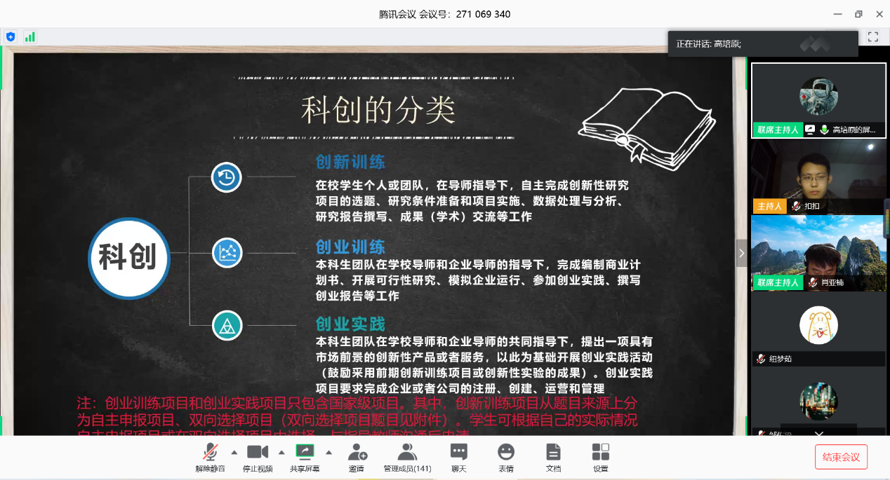 會議過程中,與會同學積極提問,學院輔導員對“如何與指導教師取得聯系”、“低年級同學適合哪種項目”等問題予以解答。