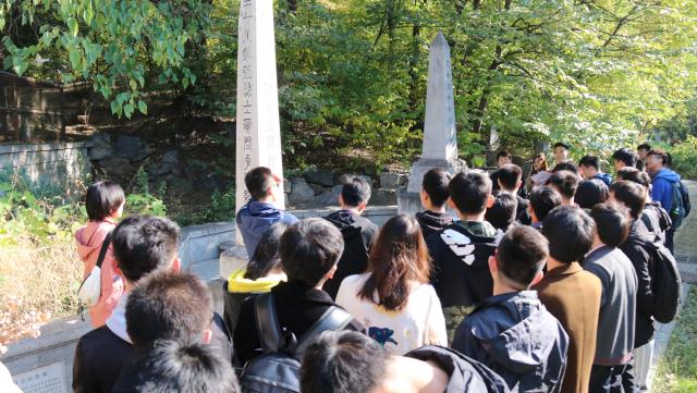 全體同學瞻仰北大“三·一八”烈士墓,追憶革命先輩為爭取國家主權勇往直前、不怕犧牲的艱苦奮斗歷程;參觀德加·斯諾之墓,緬懷"中國人民的美國朋友";瞻仰著名美國地質學家、近代地層學的創建人之一葛利普教授之墓,并在墓前開展地質知識競賽,以實際行動致敬其為中國古生物學、地層學的突出貢獻。活動最后,全體同學在未名湖畔齊唱《我和我的祖國》,用歌聲告白祖國。