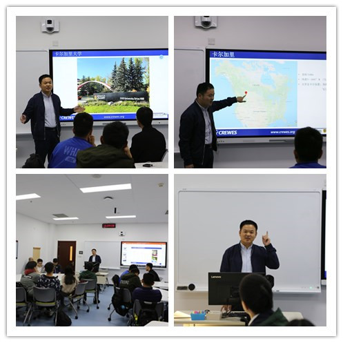 陳懷震老師首先向同學(xué)們介紹了卡爾加里大學(xué)和CREWES研究組的基本情況,展示了他在國(guó)外學(xué)習(xí)的生活環(huán)境,分享了自己的出國(guó)學(xué)習(xí)體會(huì),并建議同學(xué)們,有機(jī)會(huì)一定要出國(guó)看看,開闊自己的眼界。對(duì)待學(xué)習(xí),只要能坐的了冷板凳、肯投入時(shí)間,就會(huì)出成果。陳老師對(duì)國(guó)外學(xué)習(xí)生活的介紹引起了同學(xué)們的向往,同學(xué)們紛紛就出國(guó)學(xué)習(xí)與陳老師展開交流。