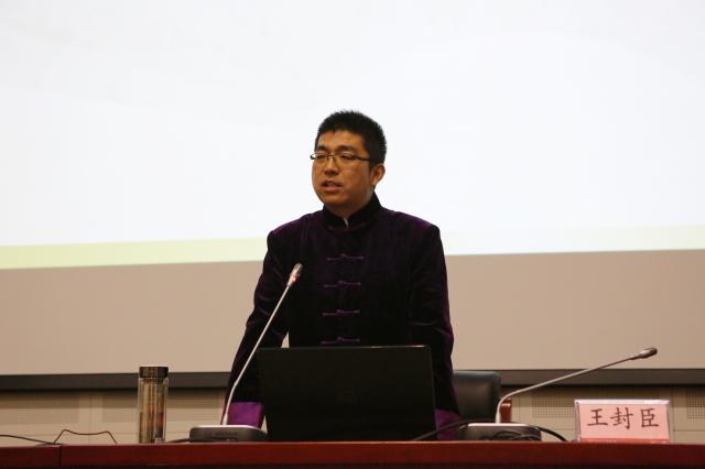 報告在王封臣先生的提問中拉開了序幕,王先生首先講解了評書是一種古老的“講故事”藝術,并介紹了評書的“前世今生”,講述了中國古代圣賢如孔孟,莊子,韓非等通過講學、論理、編事、說書等形式說評書。隨后,王先生講述了評書推動文化掃盲與文學藝術發展的作用,闡明了評書是一門集語言和表演于一體的藝術,并為大家展示了評書的三大道具:折扇、醒木、手絹。之后,王先生給同學們講解了評書的目的是傳播正能量,說人情、達教化。王先生善于用問題引導學生思考,并用生動活潑的表演全面展示評書藝術,在現場不時還說上兩段,引得同學們笑聲不斷、掌聲陣陣。