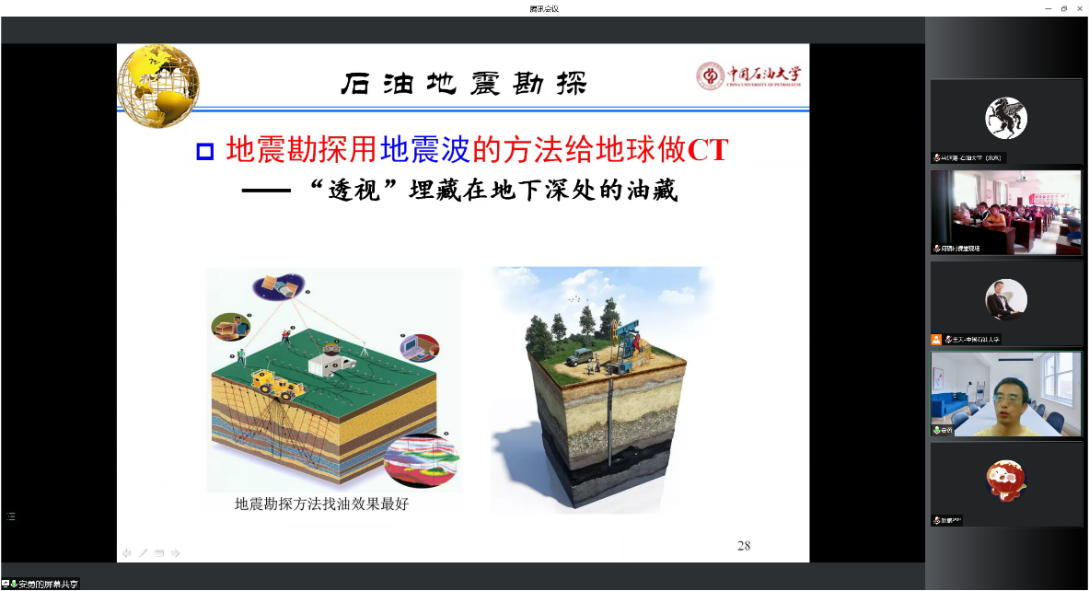 陳漢明老師從“認識地震和地震災害”、“如何減輕地震災害”和“怎樣科學避震”三個方面進行了科普。安勇老師結合石油專業(yè)知識,介紹了石油在生活中的用途及地震勘探原理。課上,同學們認真聽講,積極提出問題,表達出對知識熱切的渴望。