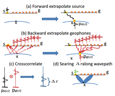 傳統的FWI主要通過使用回折波更新更新背景速度場,然而當傳統的FWI應用于地球深層結構唯一信息來源的反射數據集時,反演會表現出更強的非線性,使得反演結果并不理想。為了克服這一局限性,可以將波動方程傳輸走時反演 (WTI)擴展到波動方程反射走時反演 (WRTI)。